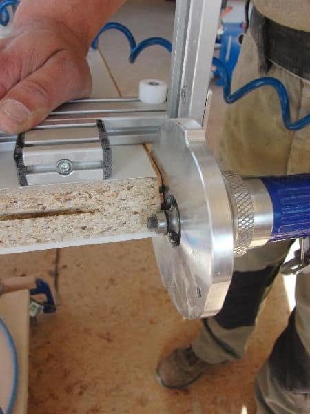 Flush milling cutter with integrated 135° fixed cut-offFlush milling cutter with short contact 0° to 135° variable Edge router KF 400 for 3 mm thin workpiecesEdge router KF 400 TOP for glue bead removalUniversal edge router for smoothing aluminium welding beadsUniversal edge router for bevelled edgesCorner former TZ 01