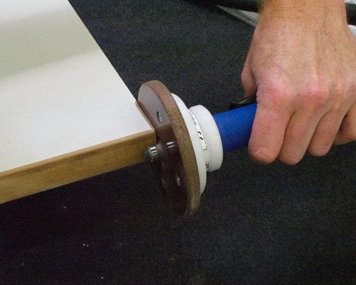 Flush milling cutter with integrated 135° fixed cut-offFlush milling cutter with short contact 0° to 135° variable Edge router KF 400 for 3 mm thin workpiecesEdge router KF 400 TOP for glue bead removalUniversal edge router for smoothing aluminium welding beadsUniversal edge router for bevelled edgesCorner former TZ 01