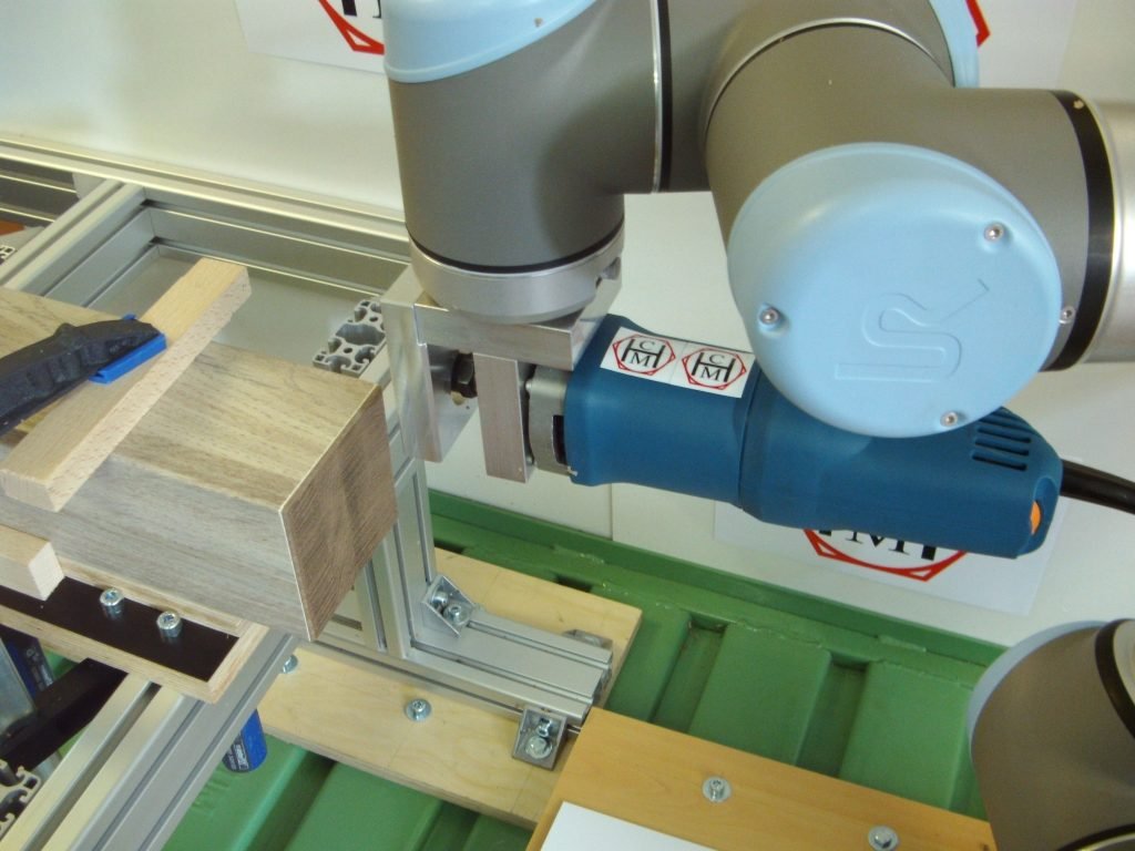 Positivo: Il robot UR 10 può essere utilizzato senza altri ausili meccanici. brancolare! fresare. A questo scopo, il contatto radiale e assiale con il pezzo avviene nel cosiddetto comando FORZA.